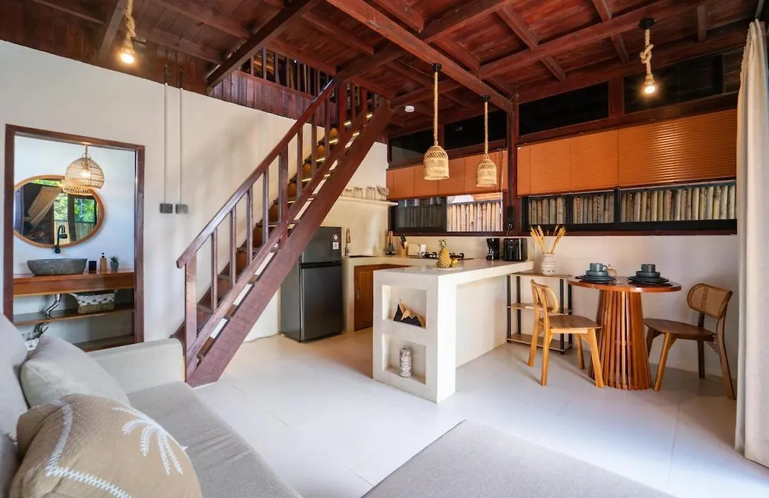 Det finns matplats, tillsammans med vattenkokare, kylskåp och köksredskap. Gästerna kan äta middag på Daeng Coffee, som ligger mindre än 200 meter bort. Den närmaste busshållplatsen är Udanaya 1 2, belägen cirka 5 minuter till fots från denna villa. Biluthyrning erbjuds i Pura Villa In Uluwatu, där det också finns en privat pool. Detta boende erbjuder en pool på en terrass.